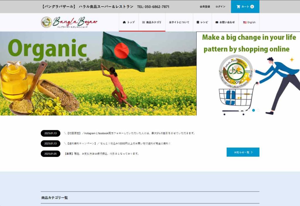 バングラデシュをはじめとするアジア地域のスパイス、豆類、魚、肉、冷凍食品、菓子、バングラデシュのスパイス、豆、魚、肉、冷凍食品、菓子、調味料まで、本場の味を幅広く取り揃えています。多くの商品がハラル認証つきで、近隣では手に入らない食材も豊富です。